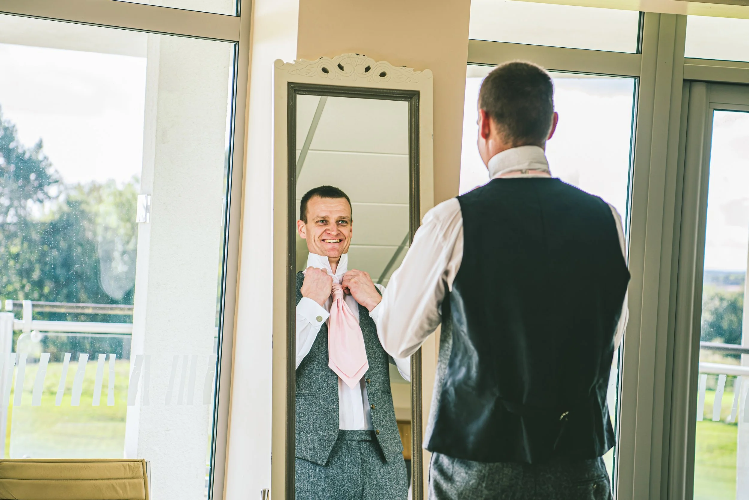 The day started with some morning prep coverage. I spent most of my time with the bride but I was able to also find some time to visit the groom in the morning too. I was even able to pop outside and capture the two of them out on their balconies, which is always a lovely shot that I like to get when I’m working at St Mellion.