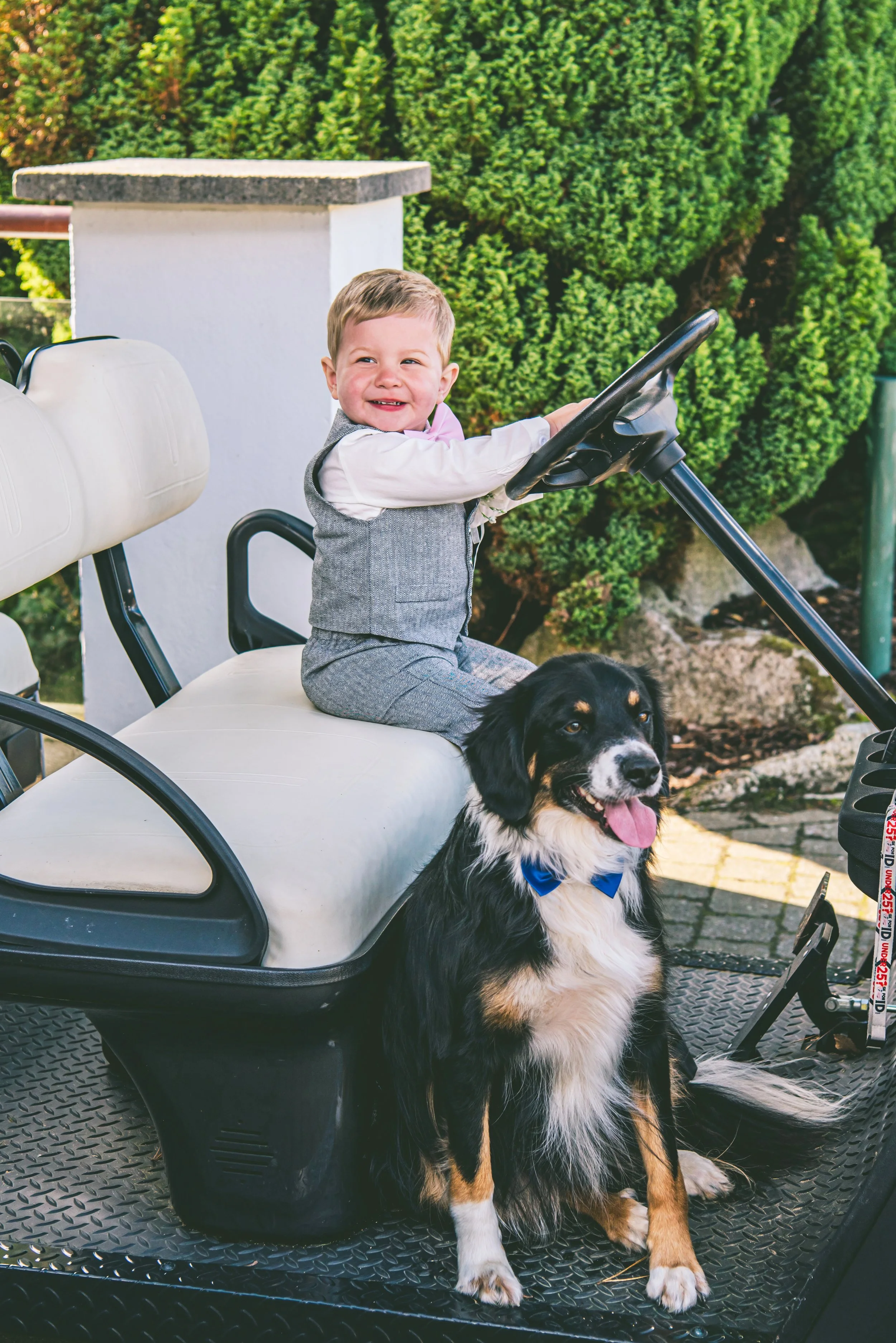 Hannah & Lee had planned for a dog walker and trainer to look after their wonderful dog Vinnie for the day. And we were lucky enough to have a little visit from Vinnie outside the venue for five or ten minutes. Vinnie was so happy to see his family and have a family photo on his mummy and daddy’s wedding day!